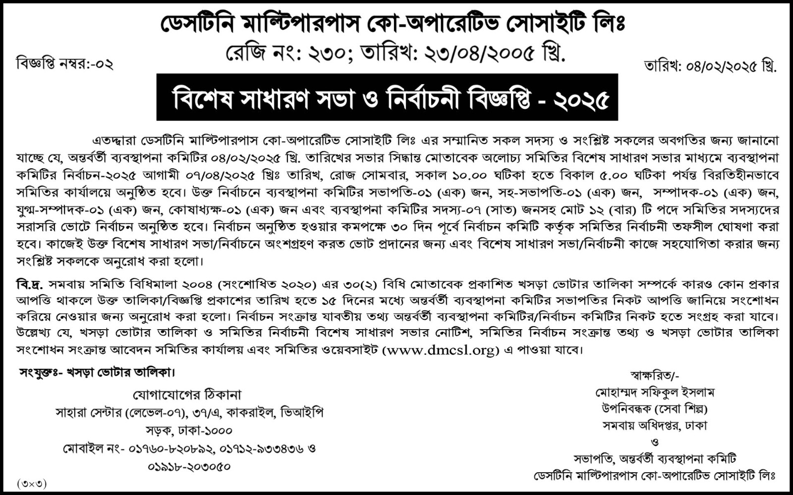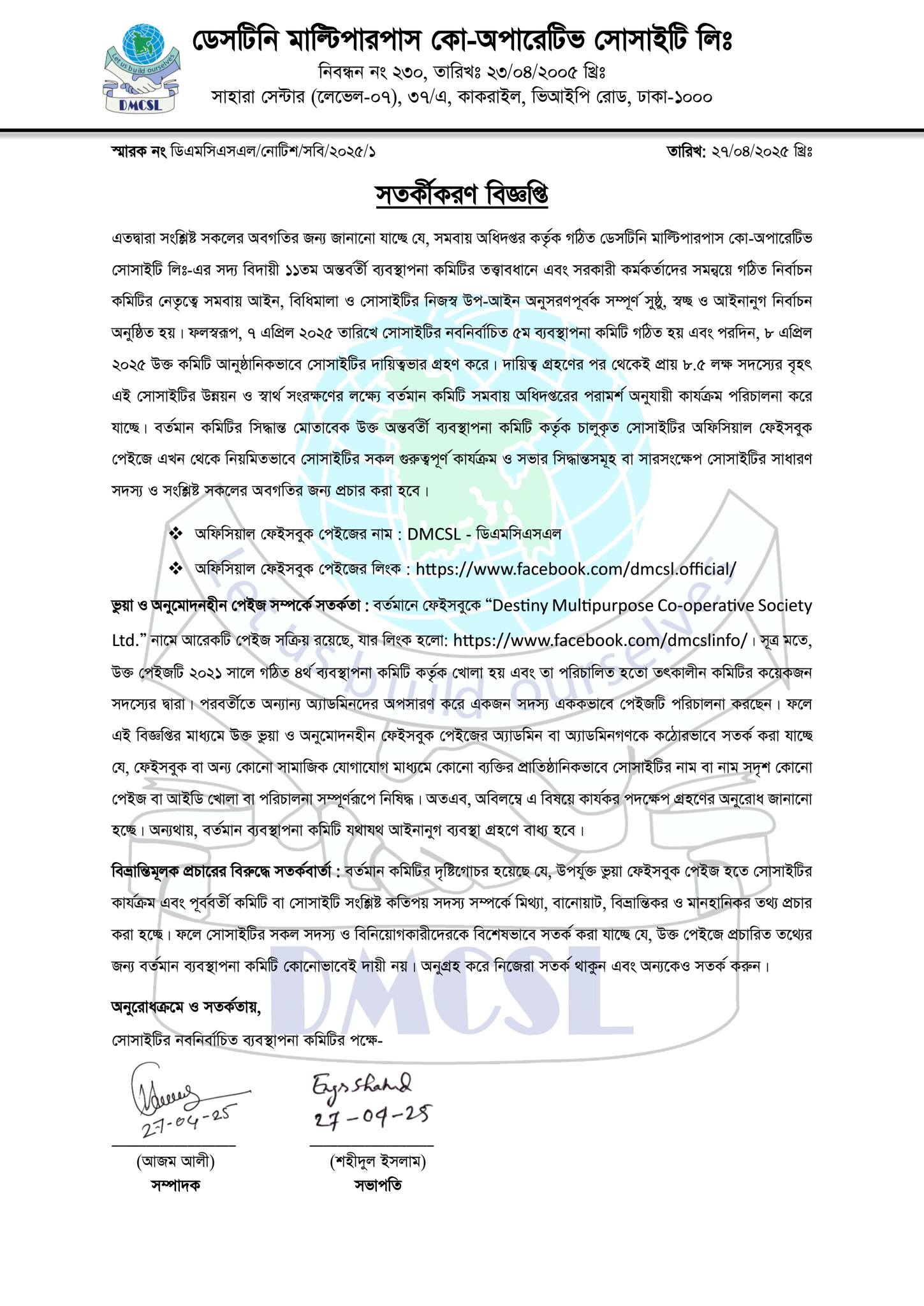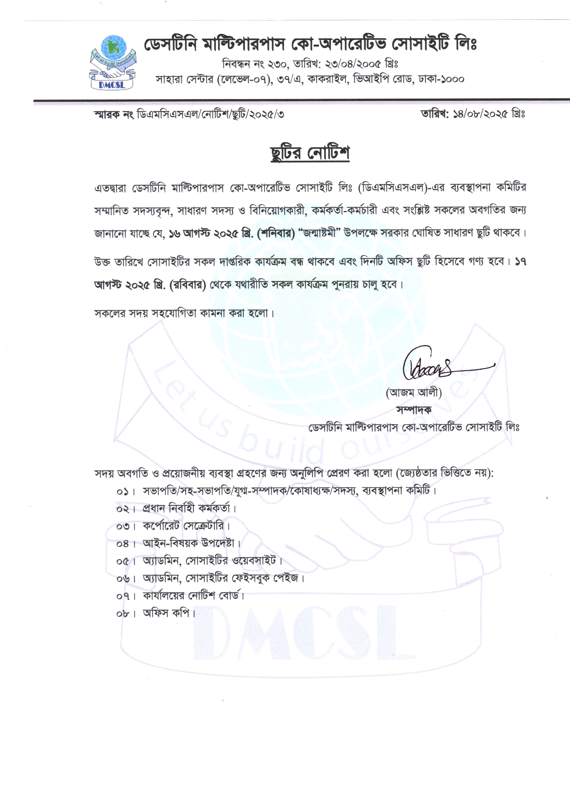 DMCSL কেবল একটি সমবায় প্রতিষ্ঠান নয়, এটি আমাদের সকলের অর্থনৈতিক অংশীদারিত্বের একটি সম্মিলিত স্বপ্ন। আসুন, আমরা সবাই মিলে একসঙ্গে এগিয়ে যাই, স্বচ্ছতা, বিশ্বাস ও দায়িত্বশীলতার আলোকে।